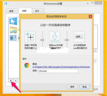 在上图中,点击箭头所指向的+按钮,以添加新的Windows应用程序,在弹出来的新窗口中有三种添加Chrome的方式,可任选一种;在Chrome开启的情况下,还是第一种最为方便;