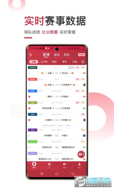 3、实时比分:随时随地查看实时比分,了解比赛进展和球队战绩,保持与赛事同步。
