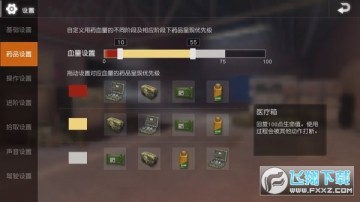 药品设置 可以根据自己的分析,设置成三个阶段,选择在那个阶段自动跳出那个药品,自动跳出,将省去背包里寻找药品的时间,可以想象的比较危险,设置的高点,因为只是去往演习信号接收区掉血补的话,也不会介意去背包补下。