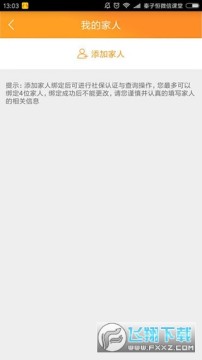 1、 使用老来网人脸识别认证之前,需要你先绑定要认证人员的信息,点击添加家人;