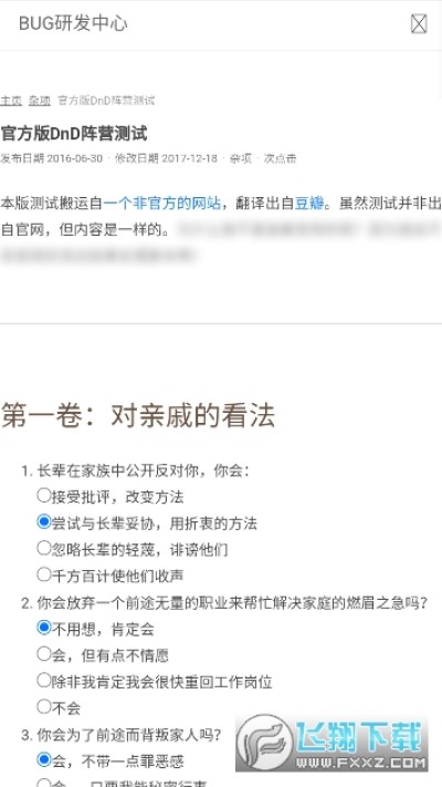 官方DnD阵营测试软件是一款非常好用又好玩的休闲测试软件,拥有比较完整科学的一套理论,可以通过选择一系列的测试题快速为你分析出什么样的性格人群,看看自己属于哪一种心理,让大家更好的了解自己,判断今后适合自己走的路,更直观的了解自己的性格。