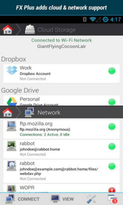 FX文件管理器是款强悍到极致的文件/媒体管理工具,不仅界面美观,操作方便直观,用户体验友好,而且包含ROOT权限、网络共享(SSH、FTP、SMB)和云存储(Google云端硬盘、微软SkyDrive、SugarSync、Dropbox、Box)等功能。使用FX管理器,您就可以快速轻松地管理您手机或平板上的所有内容!