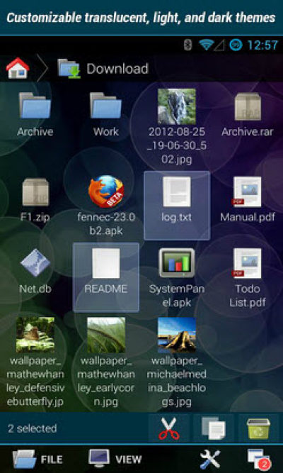 - 多窗口管理(快速切换不同的路径),直观的滑动选择手势来管理多个条目(用手指水平滑过条目来选择/取消选择,详见应用内的帮助文档)