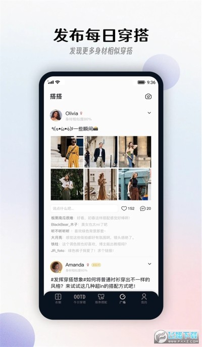 4、用户将自己的搭配照晒出,并与身材相似、品味相近、消费水平相当的用户进行交流和分享