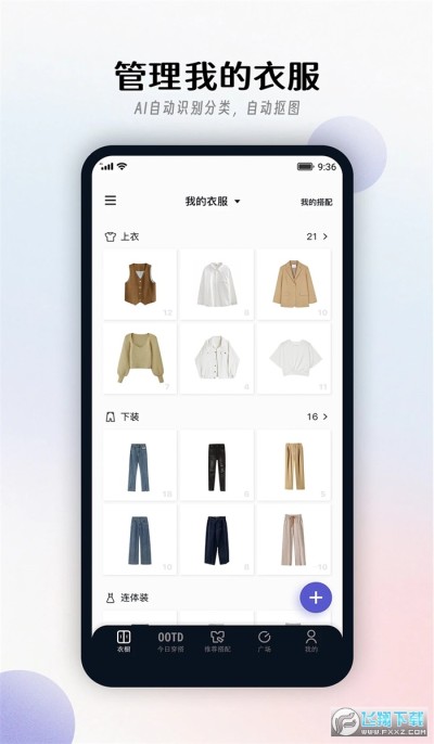 1,搭搭app能够帮助用户快速将自己的衣服整理收纳。实现衣橱管理功能。用户只要将自己的衣服拍照上传,搭搭就能自动识别这件衣服的款式类别,自动分类,自动去除背景。用户可以快速浏览自己的衣服,而且由于背景去除,界面看起来清爽干净,非常舒心。
