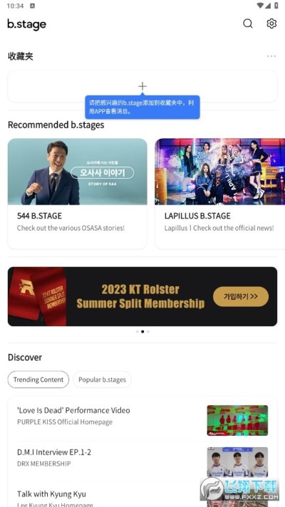 b.stage安装包安卓app中文最新版是一款为广大粉丝打造的官方追星平台,软件中用户可以在线关注自己喜欢的明星爱豆,集物料日程、钥人照片视频、粉丝交流等一体的新平台,对软件感兴趣的话不妨点击下载试试!