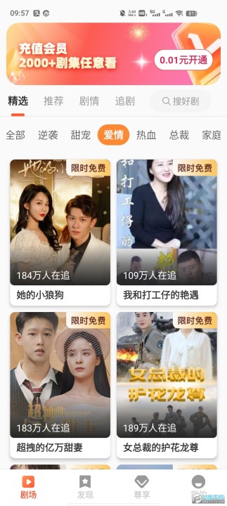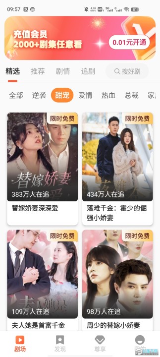 资源分享的短剧剧场软件,涉及甜宠、爱情、热血等各种元素,可以按照标签或者短剧题材来进行选择,一键观看,无需付费,还能实时了解到每部短剧的人气情况,通过榜单,也能第一时间帮我们筛选出口碑与画质都不错的作品哦。