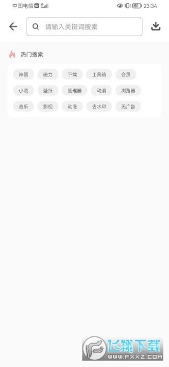 1、点击搜索框,您将进入热门搜索界面,其中包括工具、文物、磁铁、动漫、小说等数十个类别。资源非常全面。