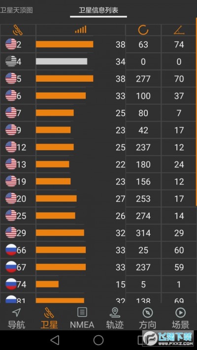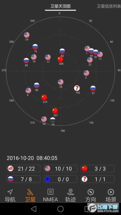 2、直观显示当前卫星信号接收状态,支持北斗、GPS、GLONASS、伽利略等多个卫星导航系统;