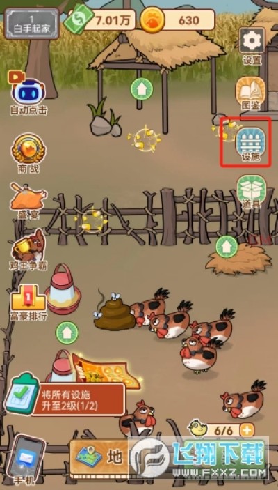2、画面非常精致,精准的模拟了鸡群和鸡舍,并且还有很多可爱的鸡宠物;