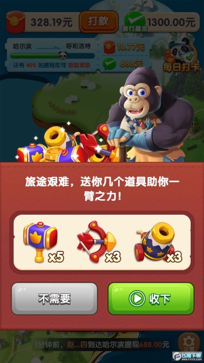 爱旅行红包版官方版是一款以经典消除为核心玩法的趣味赚钱游戏,熊猫爱旅行也可以发现不少地区的美景,玩家需要通过消除连通的图案,让熊猫顺利旅行,游戏画面细致、音乐欢快,在这个游戏中非常多的关卡更新,游戏中还有丰厚的红包福利奖励,欢迎下载!