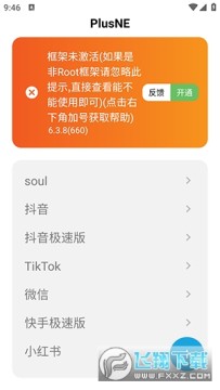 PlusNE插件使用方法与太极类似,不再赘述。需要注意的是应用转生需要在模块管理页面长按模块设置生效应用列表,不然模块不会生效。