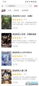 2、点击搜索栏我们可以直接搜索相应的动漫,如进击的巨人;