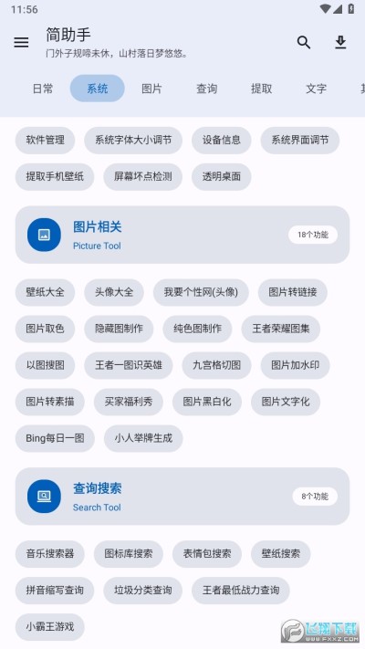 简助手app是一款非常好用的安卓免费工具箱软件,软件中包含超多实用功能可以在线进行体验,操作简单易上手,近百余项功能覆盖范围广,一个软件就包含不同的功能可以进行使用,对软件感兴趣的话不妨点击下载试试!