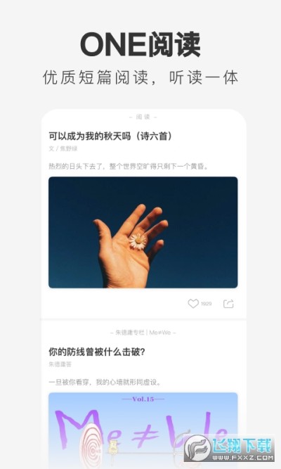 “复杂世界里,一个就够了”,作为一款简约的新媒体阅读产品,ONE希望为热爱生活的你们带来丰富且优质的内容,重拾安静阅读的心情。