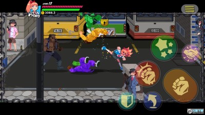 河城的卑劣街头又出麻烦事了!劈头盖脸的女主角美沙子和京子正把整个河城搅个天翻地覆,只为拯救她们的男朋友国夫君和阿力,任何人都别想挡住她们的去路!在游戏中拳打南街、脚踢北巷,学会新的绝招,大吃增进精力的食物、挥舞摧枯拉朽般的武器,并使出一系列连招、投掷和特殊攻击,把坏蛋们打得哭爹喊娘!最棒的是,这一切全都以惊艳的16位画风呈现!炫酷的武打场景中,不仅穿插了漫画剧情面板、日式动画分镜、多种结局,还有超级帅气的合成电音配乐。游戏的这一版本还支持触屏或蓝牙手柄供单人游戏(双玩家合作需要使用蓝牙手柄),更有河城的最新店主:Crunchyroll-Hime!