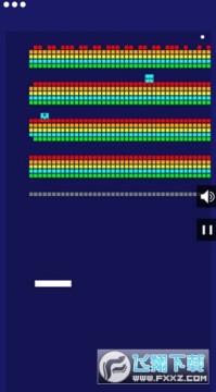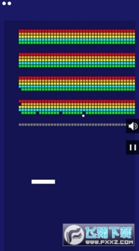 1、玩这个游戏的时候,玩家需要操控一个横条去使小白球反弹从而毁灭一块块砖块,那么怎么才可以把所有的方块打完呢?技巧在于把小白球打到两排方块的中间,例如下图,会使它掉不下来,会一直在上面反弹!