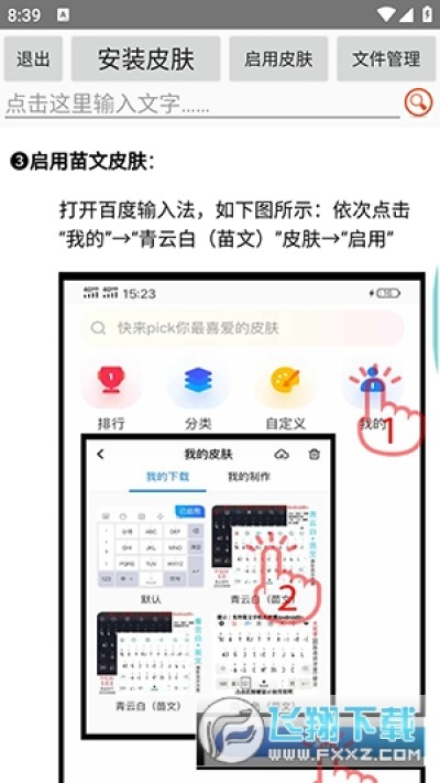 苗文输入法皮肤一键安装:用户可以通过该APP,快速找到并安装自己想要的苗文输入法皮肤,无需复杂的操作步骤。