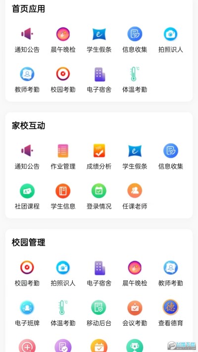 大数据智慧校园家长端和老师端。具有学校安防管理、学生管理、老师工作管理、家校共管等功能。家长即时了解孩子在校表现,包括考勤情况、宿舍情况、课堂表现、学习情况、个人品德等评价和建议,督促孩子养成良好的行为习惯和学习习惯,使孩子终生受益。形成校园管理大数据和学生成长大数据。