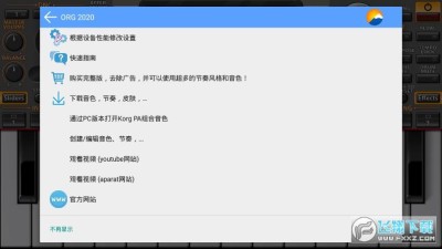 13、模拟KORG键盘:Fade,Synchro,键盘设置,速度,移调,八度,平衡,调谐,分割,和弦记忆,分接速度重置等。