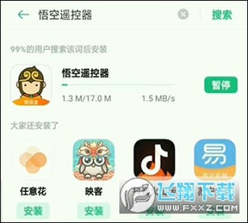 2、保持电视和手机在同一wifi下,手机连接电视,电视上也自动下载好【悟空遥控器】