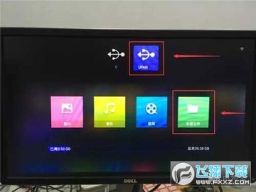 第四步:进入U盘助手后,按遥控器的方向键【上】,选择U盘,然后再选择全部文件。