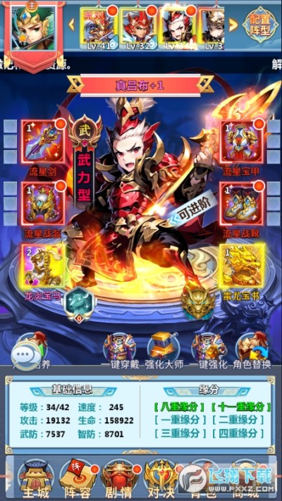 3、完成任意的冒险闯关,领取稀有的武将和装备。