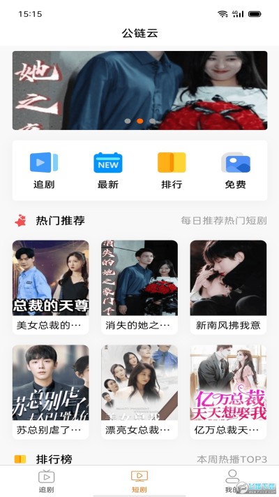 公链云app是一款安卓优质短剧视频创作平台,用户可以在线浏览自己喜欢看的短剧,海量的短剧题材资源内容,满足不同观众的追剧需求,每天都会推荐热门短剧,对软件感兴趣的话不妨点击下载试试!