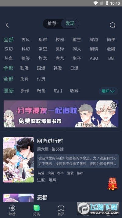 4. 软件分类明确,各种类型的漫画容易选择,界面非常简单;