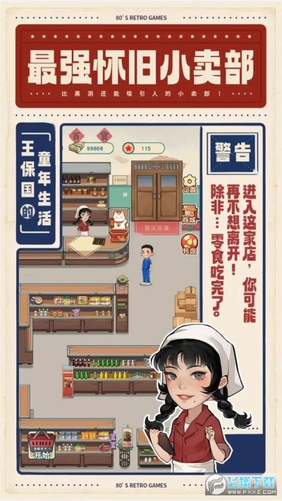 王保国的童年生活免广告版最新版是一款怀旧风格的模拟经营手游游戏里玩家将扮演王保国经营一个怀旧风格的小卖部,还原玩家们小时候的生活场景,售卖各种日常的商品赚钱,不断的积累解锁更多的柜台和商品,扩大自己的经营并改不断的升级,找到各种儿时的小商品回忆,喜欢的小伙伴快来试试吧!