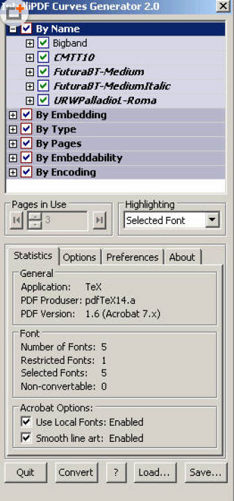 其实Intellipdf Curves除了可以转曲,它还可以用来查找PDF文档中使用的字体 被使用在哪里的,可以具体到什么位置,哪些页面,非常方便,神器来的!收藏那是必须的。