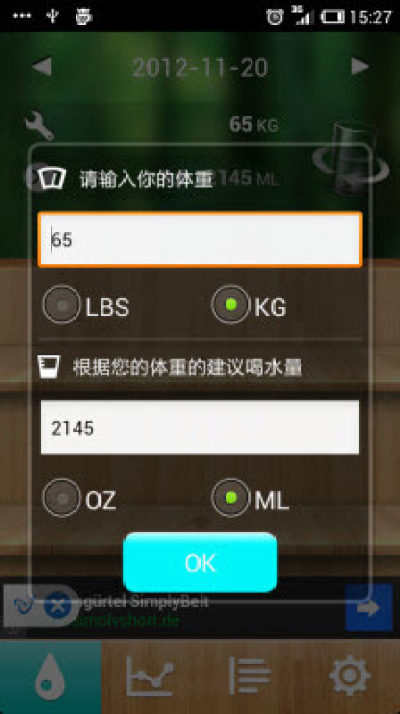 水是人体内最重要的东西,一个人要想健康长寿就必须每天饮入适量的水,那么喝多少才合适呢?小编今天给大家推荐的这款喝水宝会根据你的身体情况告诉你该喝多少水,效果非常好,想要健康不生病的朋友快来看看吧!