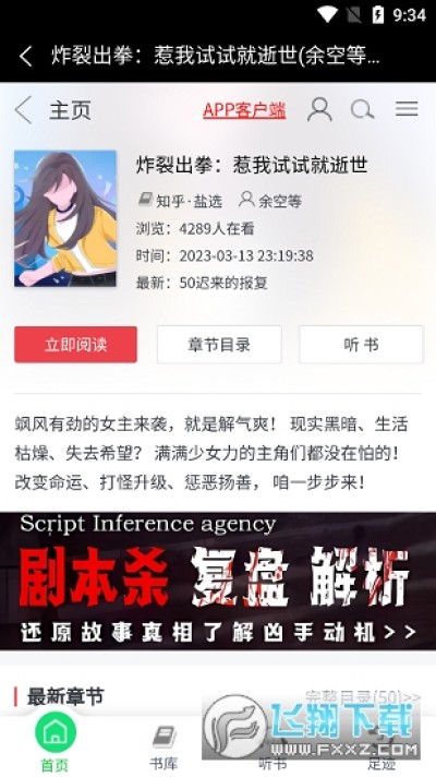 3、点击小说名字进入详情页,选择阅读方式(在线或离线),开始阅读。