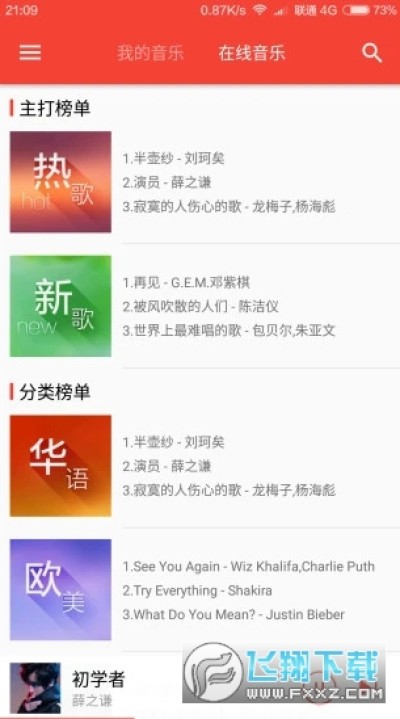 3、音乐缓存:一切的音乐都能下载,让用户在没有网络的时分也能听到音乐。