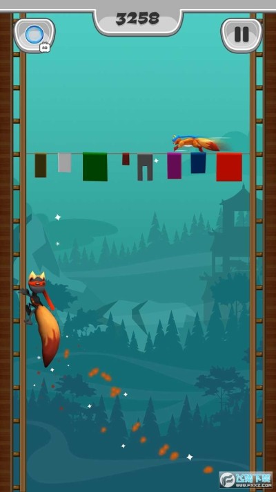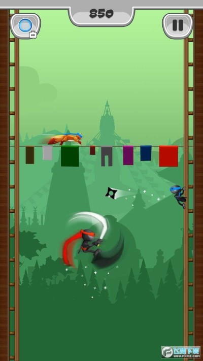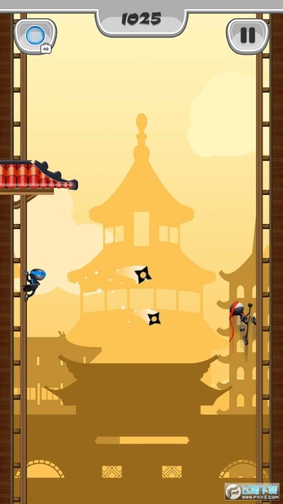 4、按一下屏幕,主角忍者先生就会左一下右一下飞快的往上爬了。