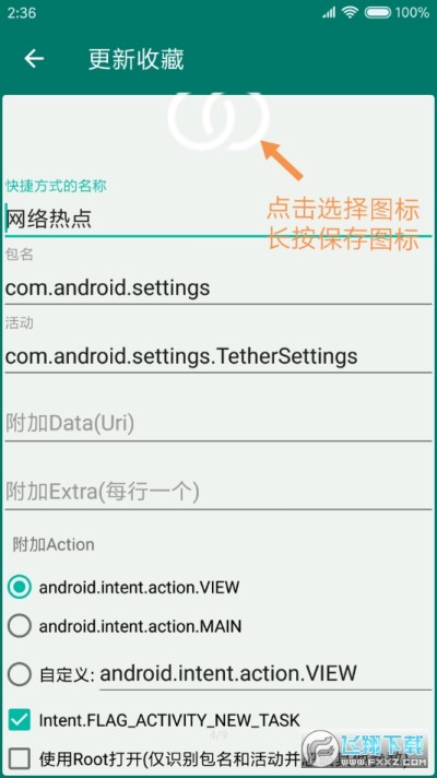 在详情编辑的界面,长按图标可以保存图标,点击图标可以选择图标,故如果需要自定义图标,可以先保存,接着用系统相册或第三方编辑器编辑,然后再导入。