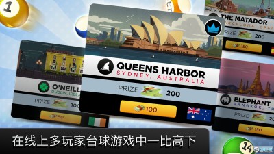 与技术娴熟的全球美式台球玩家对阵。战胜他们,赢取专享高筹码桌子。增加你的现金进账,成为游戏中最富有的台球手。