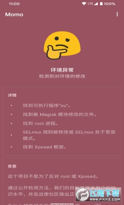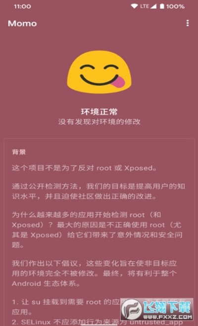 momo检测环境异常软件是一款非常实用、功能非常强的环境监控软件,帮助你检测手机里的root和框架,并实时提醒异常情况,还能轻松解锁更多玩机新姿势,界面简洁直观,操作简单方便,还可以帮助用户检测手机的硬件和软件状况,快来感受它带来的震撼体验吧!
