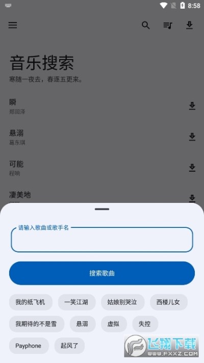 2、可以输入歌手或歌曲的名字,然后快速搜索到相应的歌曲资源。