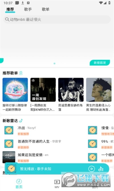 5、这里可以陈列出海量个性化引荐的歌曲,极速阅览音乐。
