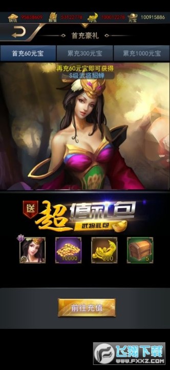 首充即送超值武将大礼包,3位超强S级武将由你来传唤!战力提升飞上天!