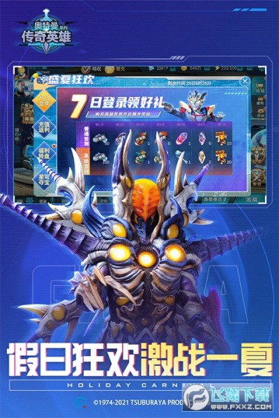 玩家连续签到20天即可获得SS永久角色—诺亚奥特曼,诺亚奥特曼的专属技能神圣领域可以让全队角色技能无限释放,强力角色助你所向披靡!