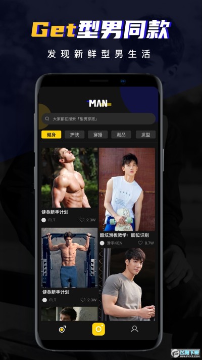 3、搜索内容,在搜索栏输入你想要的形状,自动为你寻找相应的男士站位拍照方式。