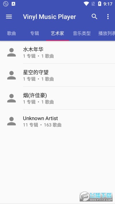 3.用户可以快速展开关键字的搜索,能按歌曲、专辑、艺术家和播放列表显示。