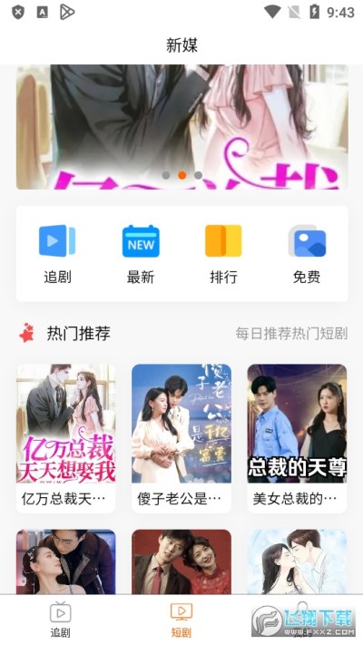 新媒短剧app是一款安卓免费短剧播放软件,软件中包含全网热门短剧资源内容,海量的短剧分类栏目满足用户的追剧需求,每天都会推出新鲜好剧,随时随地打开体验,对软件感兴趣的话不妨点击下载试试!