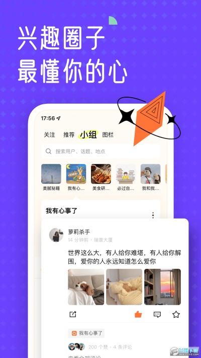 【兴趣圈子】以真实生活为切入点,发现共同话题,遇见和你同频共鸣的人。不管是小众爱好还是大众娱乐,都能被看到。