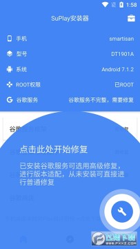 1、在本站下载安装软件之后,点击打开软件,之后软件会获取你的手机信息,我们需要点击下方的修复键位,对谷歌服务进行修复;