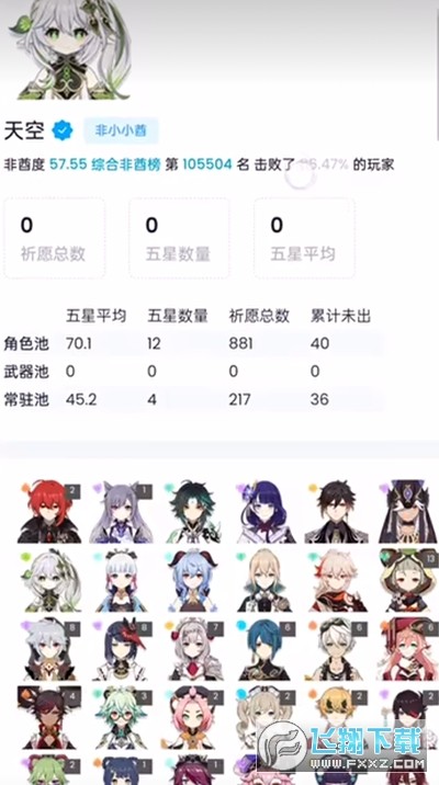 2、可以统计多种数据,比如你的总共抽卡次数,获得的四星或五星角色或武器的数量,以及你的概率和期望值。