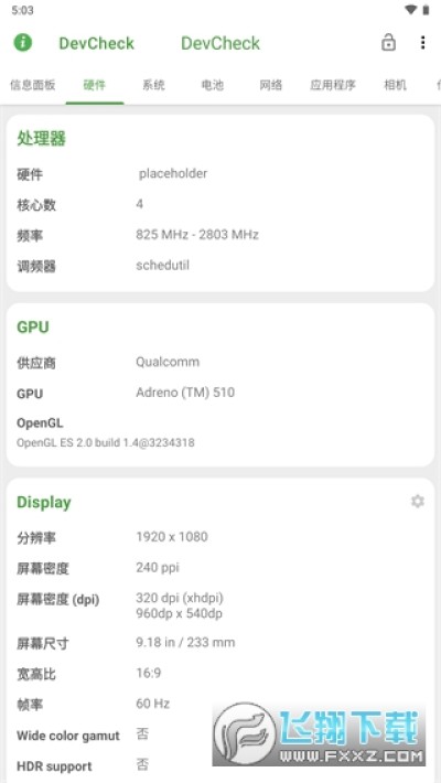 2、硬件信息:查看当前手机系统的处理器、供应商、分辨率以及屏幕尺寸等;