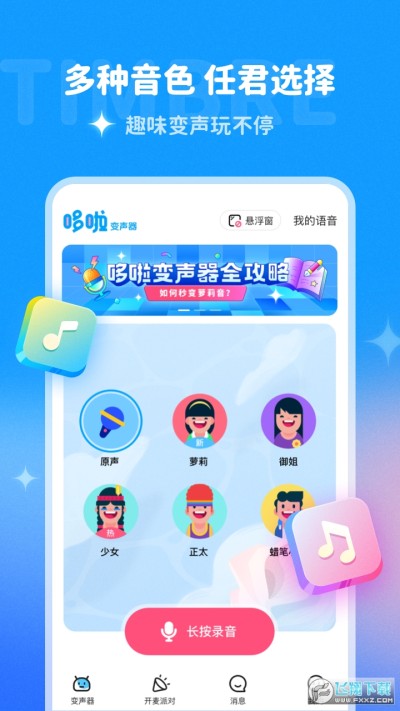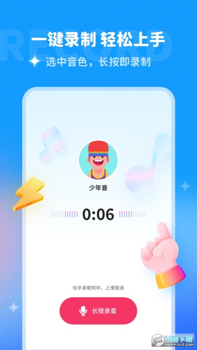 —键录制,轻松上手,选中音色,长按即录制男声女声随心转化趣味变声玩不停。